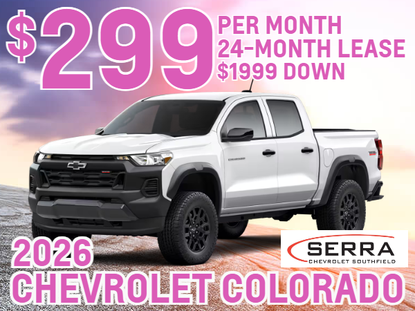 Requires A1 credit and financing with GM Financial. Lease: No security deposit with approved credit. Low mile lease. Miles per year reflect the total odometer reading upon lease end. Actual mileage may vary based on current odometer reading. Requires CTP, GM Employee or Retiree Discount, Current Lease in Household, and GM Credit Card Sign Up and Spend with $1999 down plus Startups. LIMITED AVAILABILITY. Colorado MSRP $42,990. Offer expires 3/2/26 or WHILE SUPPLIES LAST. See dealer for full details and qualifications.